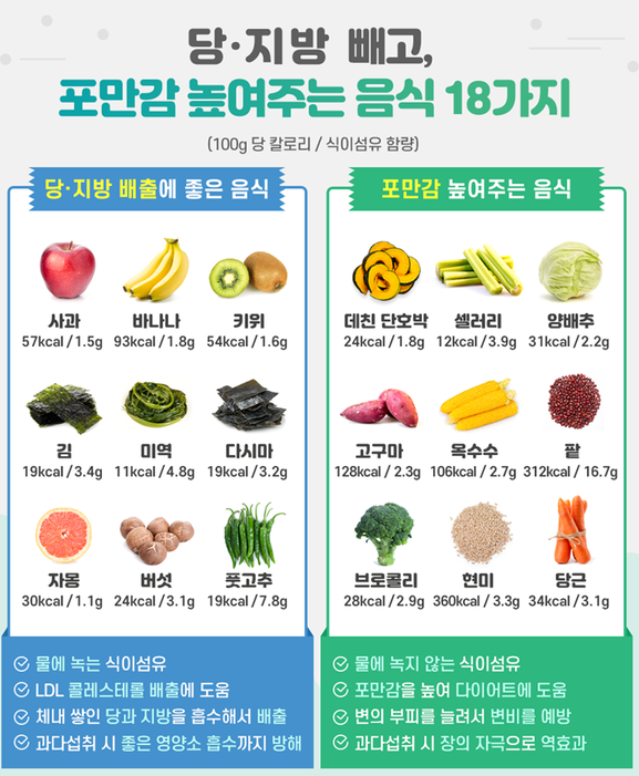 식이섬유가 우리 몸속에 주는 이점이 많습니다. 비만이나 만성질환의 위험을 낮추는 등 도움이 되니 많이 드시고 항상 건강하세요~