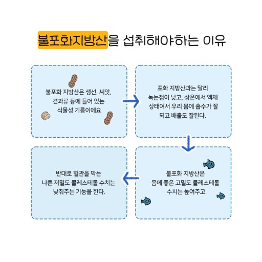 4️⃣ 영양소 흡수 : 불포화 지방은 시력, 뼈 건강, 면역 기능 등 다양한 신체 기능에 필수적인 지용성 비타민 (A, D, E, K)의 흡수를 돕습니다.