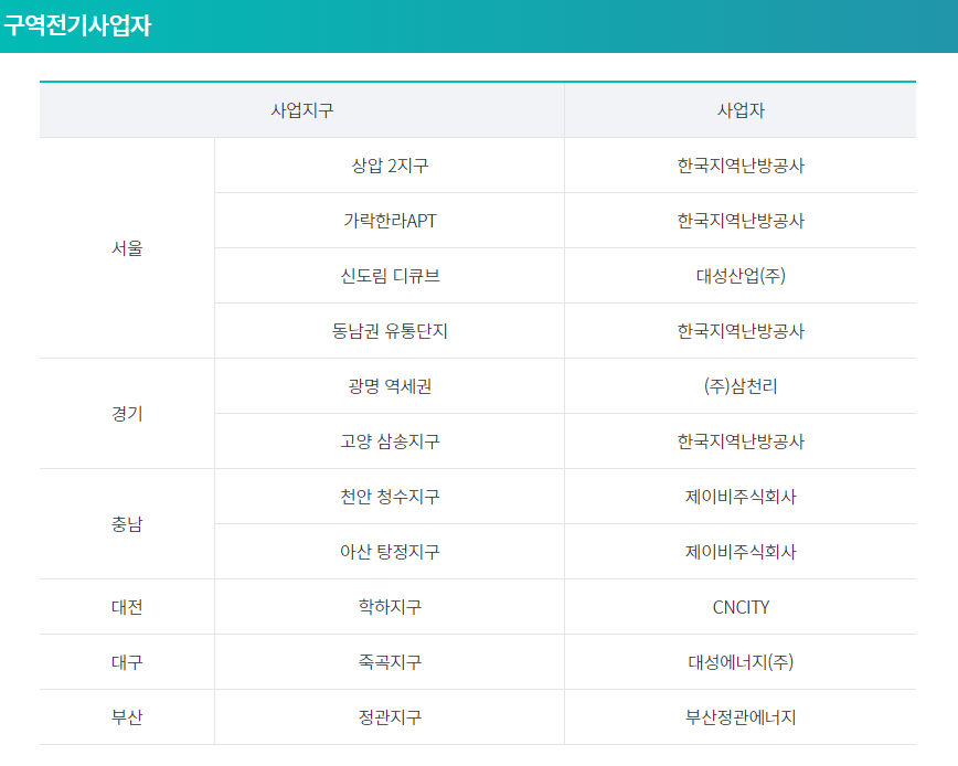 "구역전기사업자"로부터 전기공급을 받고 있는 세대는 해당 지역 사업자에 신청. 문의해 주시기 바랍니다.